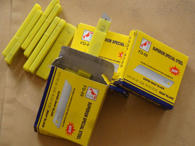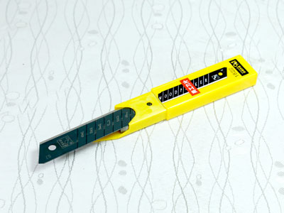 美工刀也俗稱(chēng)刻刀或壁紙刀,是一種美術(shù)和做手工藝品用的刀,主要用來(lái)切割質(zhì)地較軟的東西,多為塑刀柄和刀片兩部分組成,為抽拉式結(jié)構(gòu)。也有少數(shù)為金屬刀柄,刀片多為斜口,用鈍可順片身的劃線折斷,出現(xiàn)新的刀鋒,方便使用。美工刀有大小多種型號(hào)。